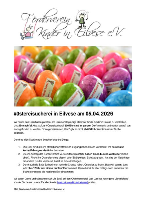 Ostereiersuchen, Förderverein „Kinder in Eilvese“