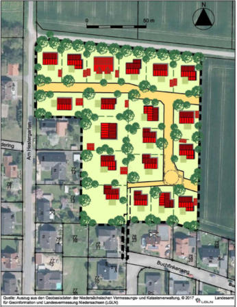 Mittlerweile ist der Bebauungsplan genehmigt und der Verkauf kann