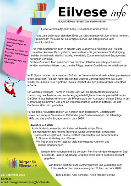 Jeder, der die Dorfentwicklung unterstützen möchte.